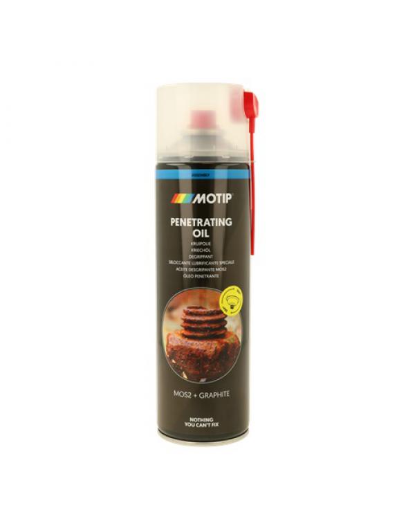 Afloja las piezas oxidadas con el Aceite desgripante MoS2 MOTIP. Este aceite tiene buenas propiedades penetrantes, contiene grafito y MoS2, es repelente a la humedad y evita la oxidación.