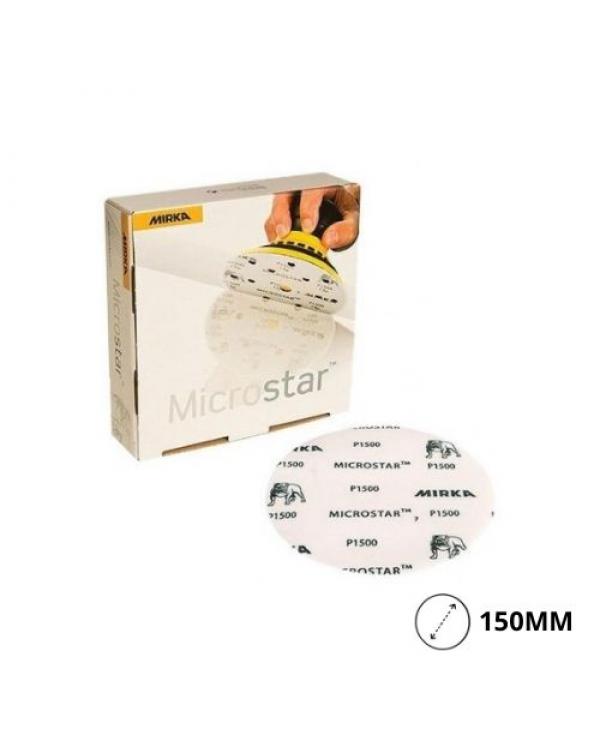 Microstar tiene una capa especial de estearato y un soporte de film suave. El disco Microstar® proporciona un acabado de alta calidad, dura más y no se emboza tan fácilmente como los abrasivos tradicionales. Microstar da como resultado un modelo de rayado liso y uniforme, fácil y rápido de pulir. Para un resultado perfecto, se recomienda utilizar Microstar® en combinación con un almohadilla de 5 mm de grosor. Microstar® está desarrollado exclusivamente para el lijado en seco.