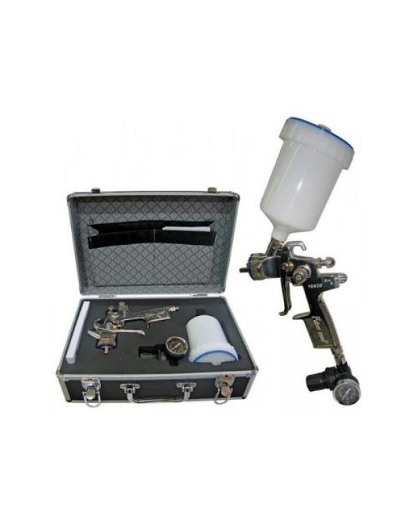 Pistola gravedad L.V.M.P. alta calidad de acabado para aplicación de esmaltes,lacas,barnices,etc. Equipada con difusor de 6 salidas, tarro de nylon 3/4, reguladores de gran precisión.