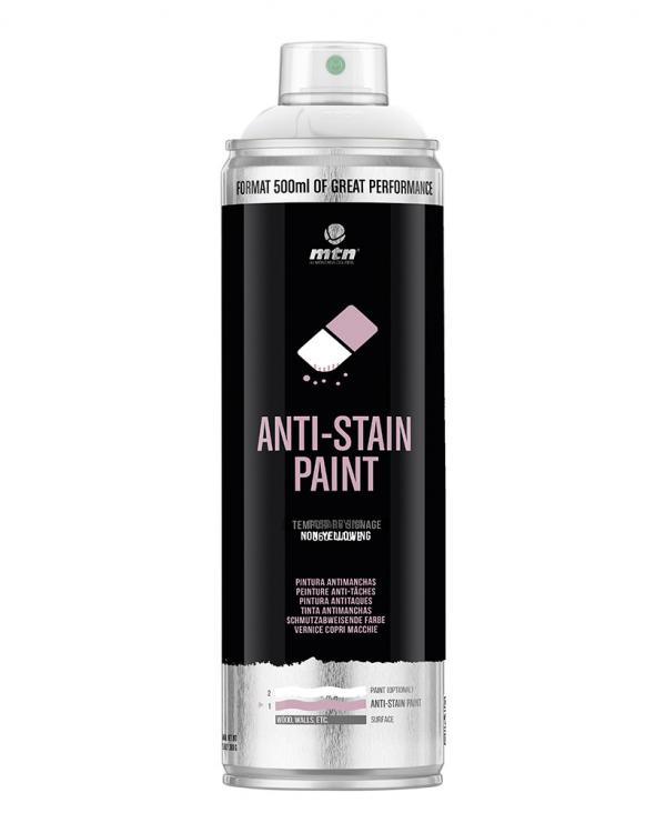 Descripción: El MTN PRO Pintura Antimanchas es un aerosol de pintura formulada con resinas acrílicas de elevada calidad, junto con bióxido de titanio y aditivos. El resultado es una pintura de un alto poder de cubrición, perfecta para tapar manchas en la pared de una forma rápida y duradera.
